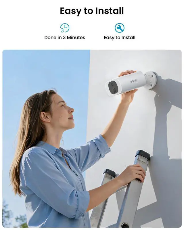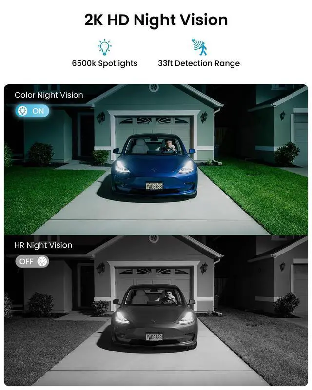 ^^ Full-Color 2K Video, Day and NightThis security cameras wireless outdoor features a 1/ 2.9" 2K 3Mega color CMOS sensor, brings enhanced resolution as well as good dynamic range. As night falls, this home security camera with keen sharp eyes can still see in total darkness and capture crystal clear image. Bright spotlights on camera will reveal details in color, and evidence has nowhere to hide. ^^ Intelligent Notifications, Miss NothingThis wifi smart camera is equipped with advanced PIR motion sensor and has a powerful human shape database, can accurately distinguishes people from other objects.