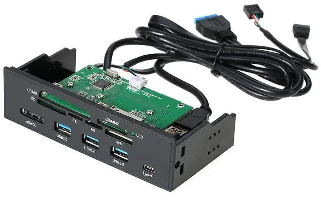 USB 3.0 Type-C ports - High speed front USB 3.0 and Type-C interface for an efficient and effortless data transfer. ^^ All-In-One Card Reader - 6 card slots offer quick and easy access to the most common-used card formats, support CF MD XD MMC TF M2 MS and many more card formats. ^^ Superior Quality and Wide Compatiblity - Compatible with Windows XP/7/8, High quality material ensure durability. ^^ For 5.25 -Inch Drive Bay - Can be easily and neatly installed into a 5.25 -Inch drive bay on your desktop to give you convenient access.