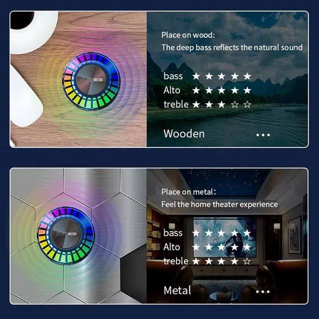 Led light strip with music sync function, built-in sensitivity adjustable microphone, led light color will change with the rhythm of the sound and music, with music to create a romantic, relaxed and cheerful party ambience, make your party more colorful and wonderful. ^^ Small Speaker with Bluetooth- The diameter of bone conducting speaker bluetooth is about 6.1 cm/ 2.4 inches, weight is about 48g/ 1.7 oz. Two speakers bluetooth can be paird automatically, which will give True wireless stereo sound experience. Highly recommend you get two interconnected speakers, to enjoy 2.0 surround sound experience.