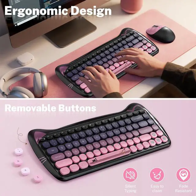 184 round keycaps, 2.4GH z stable and better wireless connect technology, gorgeous color.