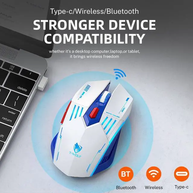 Meet the X7 Tri-Mode Wireless Gaming MouseEngineered for gamers who demand performance, comfort, and versatility. With a sleek blue and black mecha-inspired design and advanced customizable features, this mouse is built to keep you comfortable and in control through every battle and work session. Three-Mode ConnectivitySwitch effortlessly between 2.4GH z wireless, Bluetooth, and wired USB-C modes. The nano receiver stores neatly inside the mouse, and the reliable 10m wireless range ensures smoothand uninterrupted operationperfect for gaming or multitasking across laptops, PCs, and tablets. 6-Level DPI & High-Performance SensorEquipped with the S203 sensor and six adjustable DPI levels (1200 to 12800), the X7 delivers precise cursor control and rapid response.