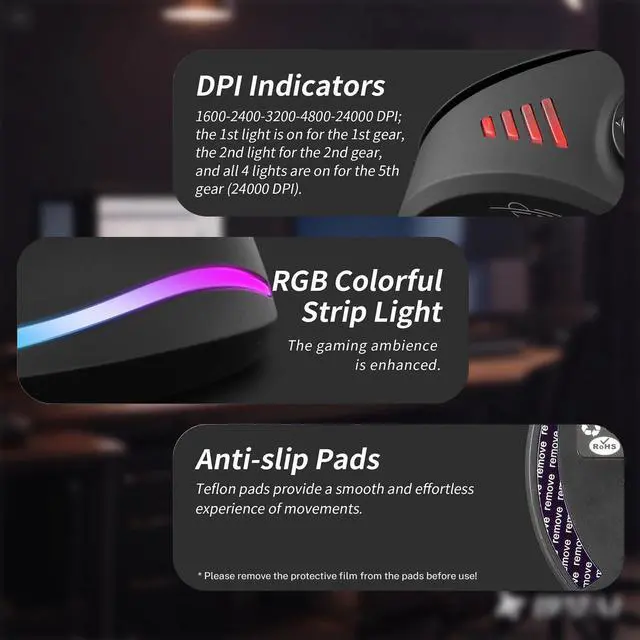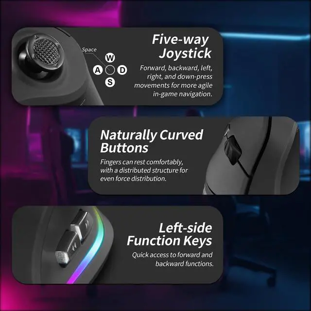 Enhanced Game Control: Dominate FPS, MOBA, and MMO games with the thumb-operated rocker that replaces five traditional keys. Execute precise movementsforward, backward, left, right, and clickwith minimal effort, giving you a competitive edge in fast-paced gameplay. ^^ 24000 DPI & RGB Lighting for