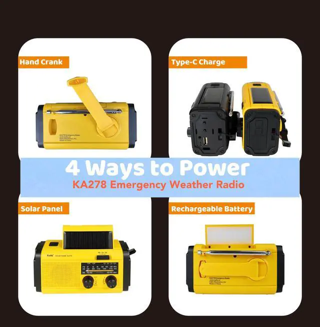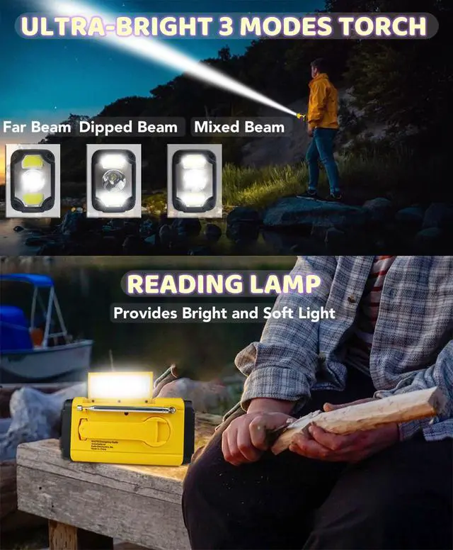 Be ready for any situation with the Kaito Voyager Solar Crank Radio, a reliable and portable companion designed to keep you connected, informed, and illuminated. Powered by a high-capacity 4000 mAh rechargeable battery, this versatile radio supports solar charging, hand cranking, and USB input, so youll never run out of power. Receive AM, FM, and NOAA weather broadcasts for critical updates and entertainment wherever you are. Dual lighting options a powerful LED flashlight and a convenient reading lamp. Offering dependable brightness indoors or outdoors. The USB charging output helps keep your essential devices running, while its compact and durable design makes it ideal for home use, travel, camping, or your emergency preparedness kit.