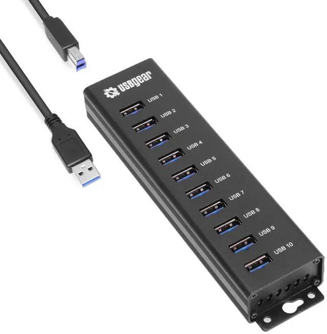 COMPLETE KIT: Integrated metal mounting flanges allow secure surface or wall mounting for home, office, classroom, lab, or gaming setups. Includes 10-Port USB hub, 3ft USB Type-A to Type-B cable, and 5V/4A power adapter (100-240V AC Switching Adapter).