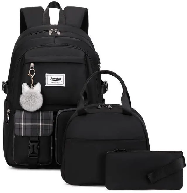 Joymoze Women Fashion Travel Backpack Set Roomy Laptop Rucksack Set Casual Daypack for Girl Black