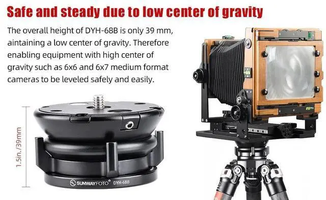 Sunwayfoto Black DYH-68B 68mm Low Profile Leveling Base for Tripod w Butterfly Lock Collar +/-15 Tilt