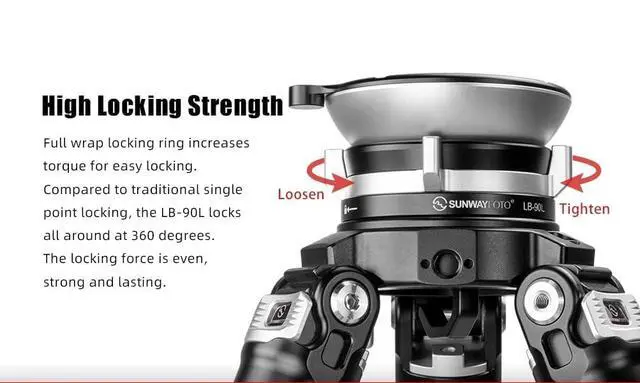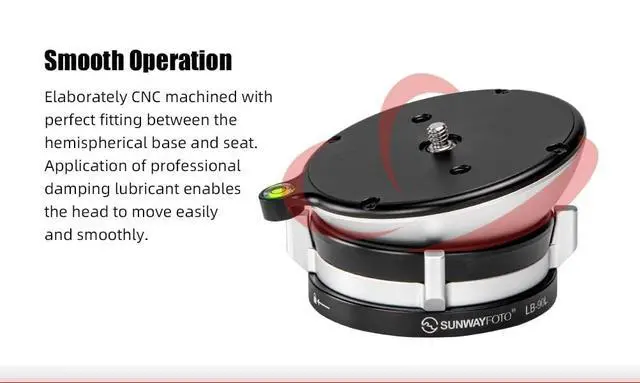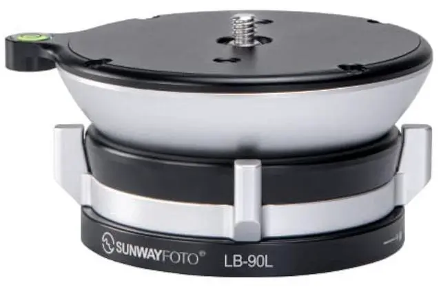 Sunwayfoto Black LB-90L 90mm Low Profile Leveling Base for Tripod w External Bubble Level & Butterfly Lock Collar +/-15 Tilt
