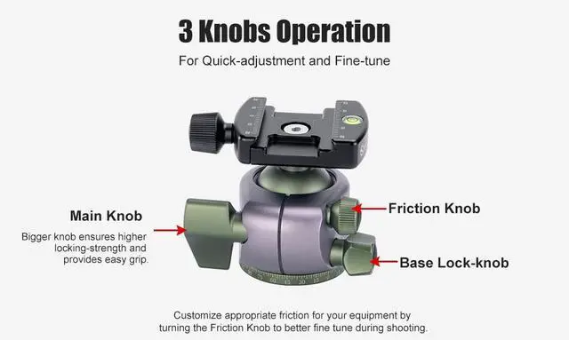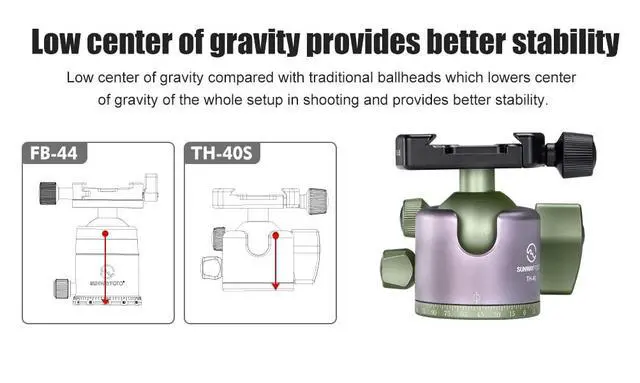 Sunwayfoto TH-40S 40mm Low Profile High Locking Strength Ball Head for Tripod Arca Compatible