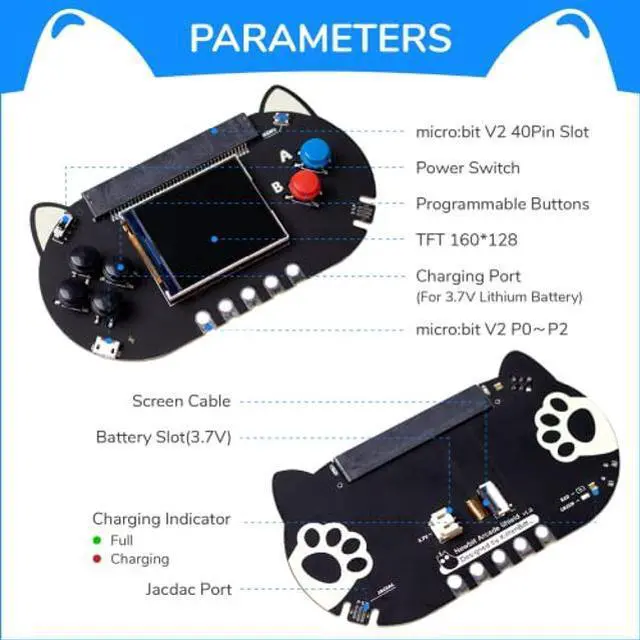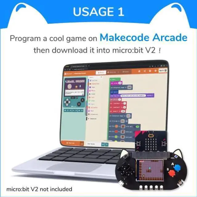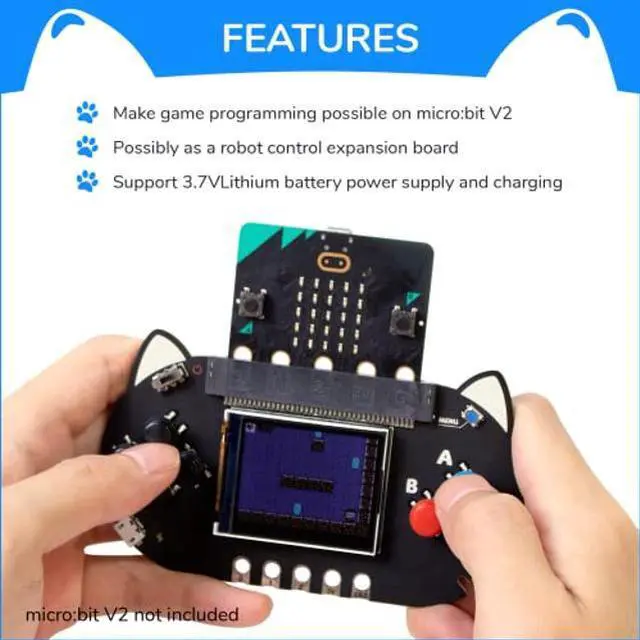 [(Product Features)] KittenBot newbit arcade shield is an expansion board developed exclusively for micro:bit V2. As an expansion game console to create custom games through visual programming.