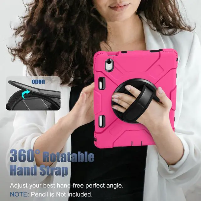 Cousper for iPad A16 11th/10th Generation Case 11/ 10.9 Inch 2025/2022 with Screen Protector, 360degRotating Stand, Handle, Adjustable Strap, for iPad Shockproof Cover 10 Gen with Pencil Holder, Rose