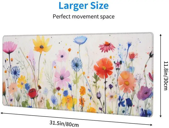 * Perfect Size: Measuring 31.5" x12"x 0.12" (800mm x 305mm x 3mm), our Wildflowers desktop pad mat is perfect for gaming and work. It saves desk room and still leaves plenty of space for your mouse to move all around.