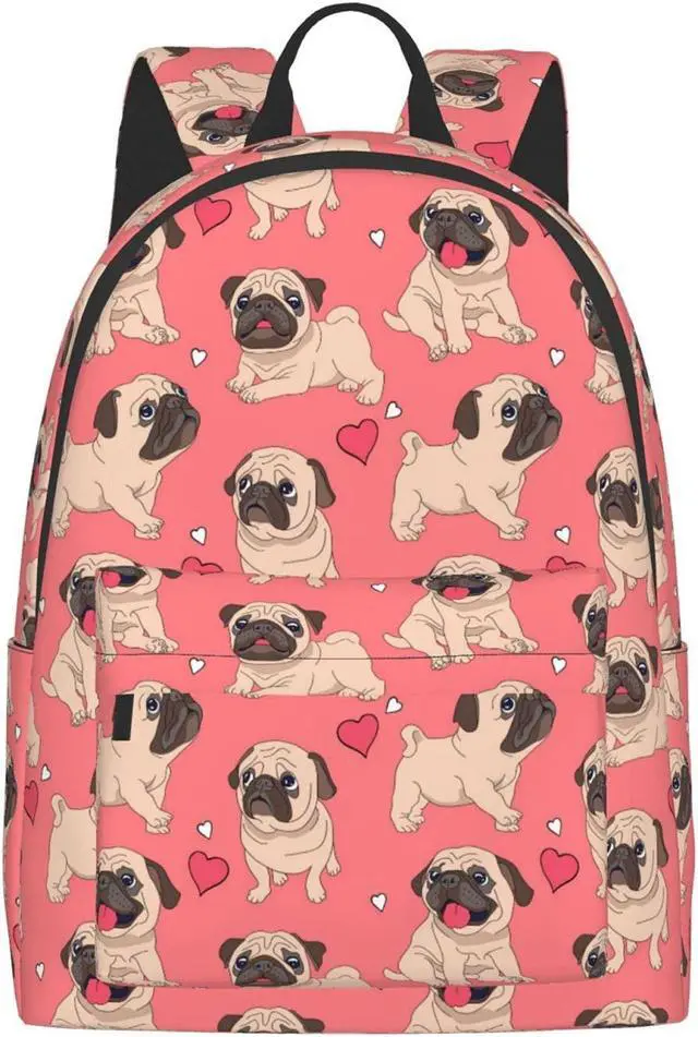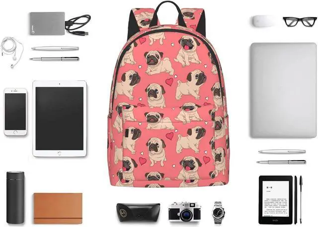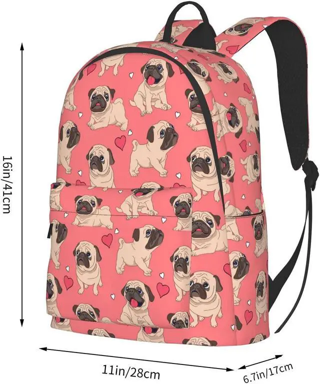 FeHuew 16 inch backpack Cartoon Pugs Puppies Laptop Backpack Full Print School Bookbag Shoulder Bag for Travel Hiking Camping Daypack