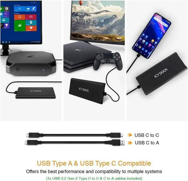 ICY DOCK M. 2 NVMe to USB 3.2 Gen 2 (10Gbps) Enclosure Adapter Thunderbolt 3 / 4 Port Compatible Includes USB-C and USB 3.0 Cables (Supports M. 2 NVMe SSDs 22110 2280 2260 2242) ^^ ICYNano MB861U31-1M2B
