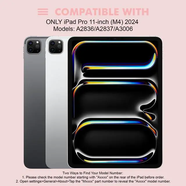 [Keyboard Case Compatibility]: The LAMA keyboard case is compatible with iPad Pro 11-inch (M4) 2024 (A2836/A2837/A3006)Only; But NOT fit for iPad Air 11" (M2) 2024!! The case with keyboard can be folded like a book and unfolded like a mini-computer, easy to carry around, it's good for working, taking notes, and typing in the office, school, or on travel. Please kindly check the back of your devices before purchasing (NO PEN included).