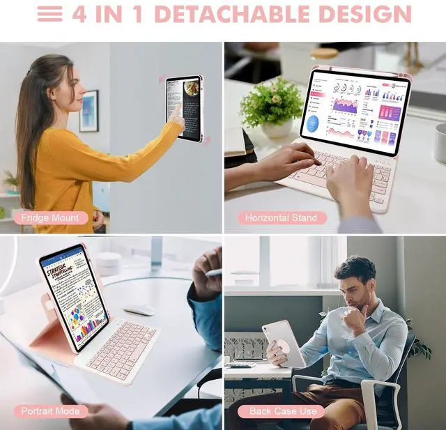 [Wireless Detachable Keyboard]: The magnetic keyboard and case are separated, and magnetically attached, the keyboard can be removed from the case. The iPad keyboard case can be attached to the case magnetically, if not needed, it can be removed. Bluetooth connectivity is easy to operate.