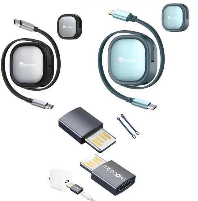 Retractable iPhone 15 cable & Retractable USB C to Lightning PD Fast Charging Cable (1Pack) & USB-C to USB A Reversible Adapter (2Pack)