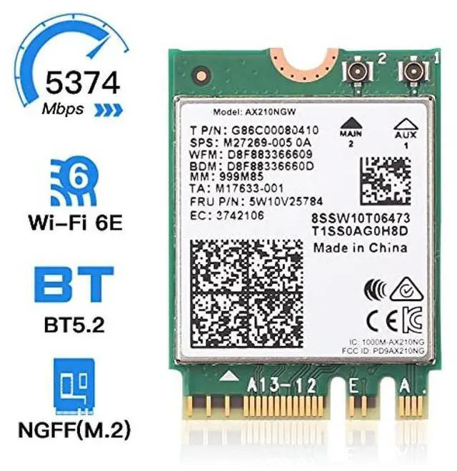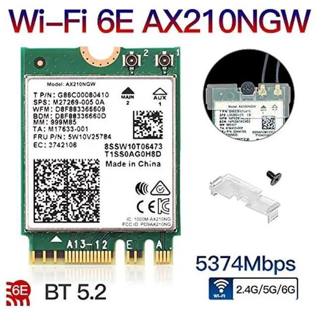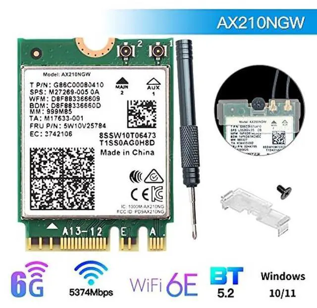 Wi-Fi 6E AX210NGW Wireless WiFi Card BT5.2 M.2 2230 Tri-Band Expands WiFi to 6GHz 160MHz 802.11ax ac MU-MIMO AX210 AX5400Mbps wifi 6E Network Card Better AX200NGW for PC Laptops Only for Windows 10 11
