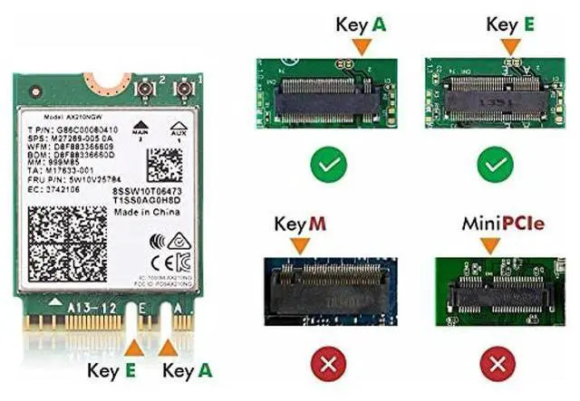 Wi-Fi 6E Dual band 2x2 160MHz:REKONG Wi-Fi 6E AX210 module supports legacy Wi-Fi 4, 5, 6 and Wi-Fi 6E and is designed to support Wi-Fi 6 wave 2 features. By implementing the new Wi-Fi 6E technology supporting the new 6GHz band that includes 1200MHz of new contiguous spectrum (>2x compared to 5GHz) with more Gigabit Wi-Fi options and exclusivity to Wi-Fi 6 products.