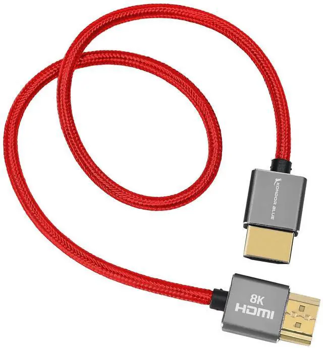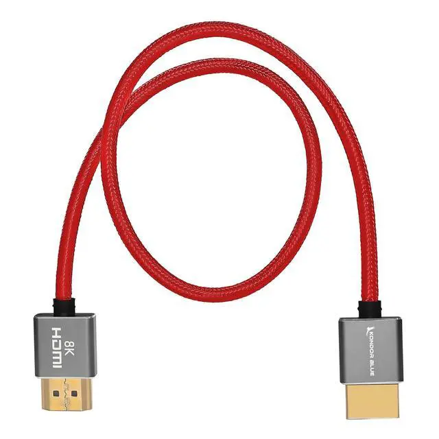 KONDOR BLUE ^^ Full HDMI 2.1 8K 17 Straight Braided Cable ^^ Type A Male to Male, Ultra High Speed 48Gbps, 8K/60Hz, 4K/120Hz, HDR, 3D ^^ for On-Camera Monitors, Recorders, Cinema Cameras ^^ Red