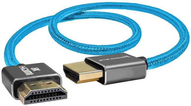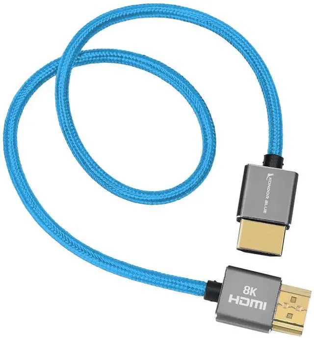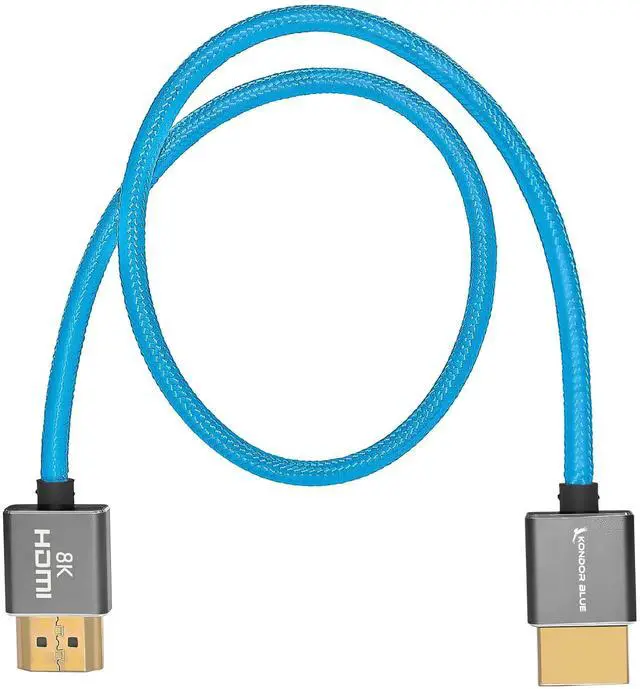 KONDOR BLUE ^^ Full HDMI 2.1 8K 17 Straight Braided Cable ^^ Type A Male to Male, Ultra High Speed 48Gbps, 8K/60Hz, 4K/120Hz, HDR, 3D ^^ for On-Camera Monitors, Recorders, Cinema Cameras ^^ Blue