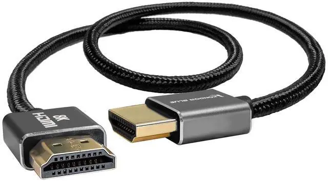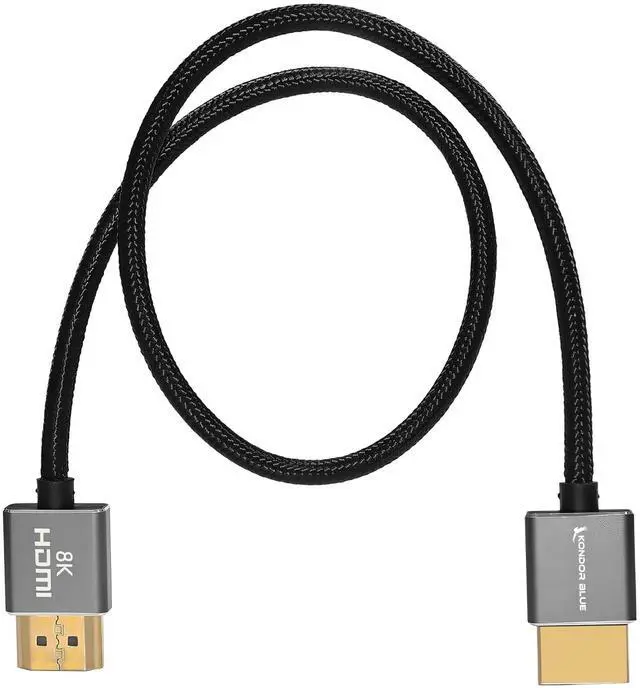 KONDOR BLUE ^^ Full HDMI 2.1 8K 17 Straight Braided Cable ^^ Type A Male to Male, Ultra High Speed 48Gbps, 8K/60Hz, 4K/120Hz, HDR, 3D ^^ for On-Camera Monitors, Recorders, Cinema Cameras ^^ Black