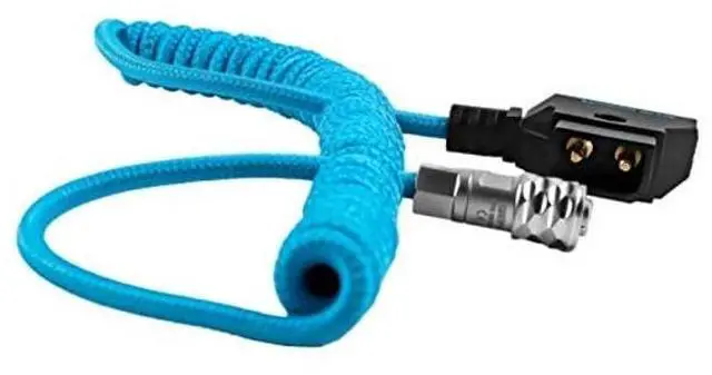 Kondor Blues coiled D-Tap to BMPCC 4K/6K Power Cable. Compatible with Blackmagic Pocket Cinema Camera 4K/6K and a Gold-Mount or V-Mount Battery. This coiled D-Tap to 2-Pin Power Cable lets you power your Cinema Camera 4K or 6K using an external battery with a D-Tap port. One end features a right-angle D-Tap connector, and the other features a 2-pin connector plugging into your camera. Use this power cable with separately available V-mount or Gold-mount batteries and plates that provide a D-Tap output for a long-lasting power solution.