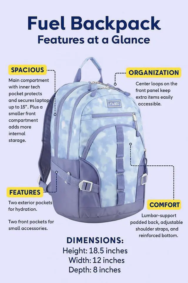 ^^ COMFORT: Ergonomically designed lumber support padded back and adjustable padded shoulder straps, top handle & reinforced and durable bottom panel.