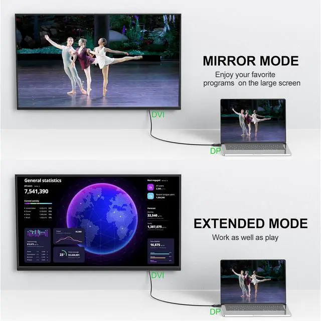 Video TransmitsConnect and configure your monitor for an Extended Desktop or Mirrored Displays.The DisplayPort to DVI supports resolution up to 1920x1080@60Hz (1080p Full HD) including 720p, 1600x1200, 1280x1024 for high definition monitors or projectors.