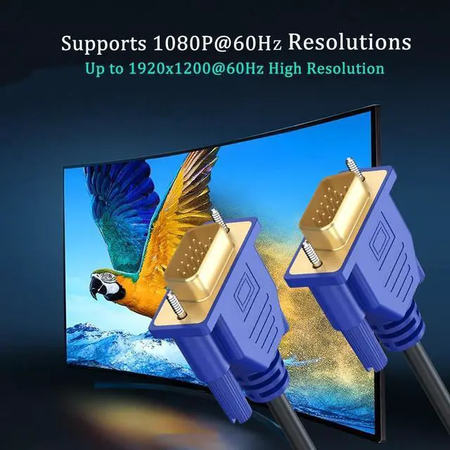 Video Resolution: VGA Cord supports resolutions up to 1920x1200 (WUXGA), 1080P@60Hz (Full HD), 1600x1200 (UXGA), 1024x768 (XGA), and 800x600 (SVGA) for computer monitor, work, gaming, or projector ^^ No Ferrite