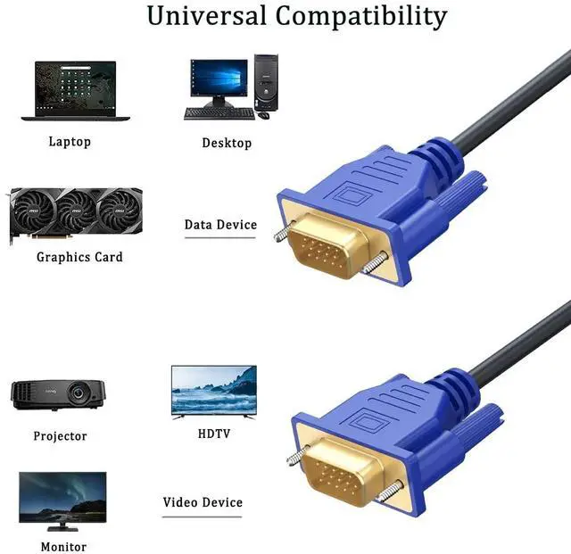 VGA Cable 6FT 5Pack: VGA to VGA Cable 6ft, links VGA port equipped computer to a monitor, projector, tv with 15-pin VGA port. (also known as DB-15, DE-15, HD-15, HDB-15 or D-sub 15).