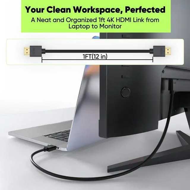 An essential 1 foot high speed HDMI cable for home & office & outside setups. Supports mirror, extend and game modes. ^^ Compact & Sleek HDMI Cable ShortFeatures Slim black housing and flexible PVC jacket for easy installation in tight spaces. Perfect for multi-port devices or compact setups. Plug and Play-Effortlessly connect splitters, hubs, KVMs, or docking stations with outstanding performance. Lightweight and short buildideal for wall-mounted TVs, small desks, and portable kits.