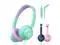 MEE audio KidJamz KJ45 Childrens Safe Listening Headphones with Volume Limiter & Microphone, Adjustable On-Ear Kids Headset Wired w/ 3.5 mm Jack for Online Learning/School/Travel/Tablet (Mint/Lavender)