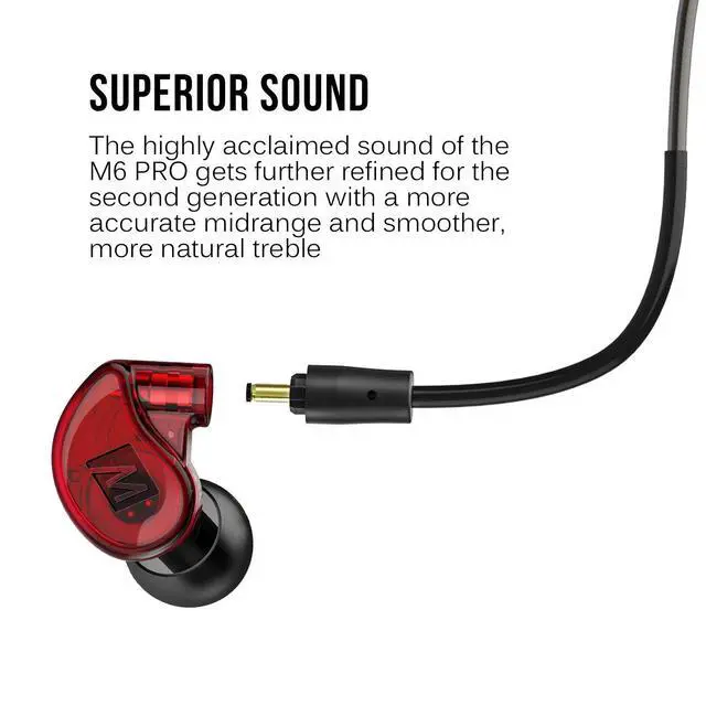MADE FOR MUSIC: 2nd-generation M6 Pro in-ear monitors utilize a 5um driver diaphragm and aluminum voice coil to produce more precise movement than conventional drivers, delivering clear, full-range audio with more accurate mids and smoother highs.