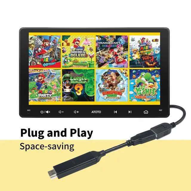 Transform Your Drive with HDMI to USB AdapterThe AC-HBV86 HDMI to USB Adapter connects devices with an HDMI output port to another device with a USB-A end. Enjoy your favorite movies and shows on the TV box, and have the theater-like experience on the bigger screen just in car. Add fun and excitement to every trip by playing games with your loved ones with the gamepad. ^^ Easy Setup & Plug-and-PlayOur HDMI to USB Adapter epitomizes convenience with its plug-and-play functionality, eliminating the need for complex installations or additional drivers. Simply Connect the HDMI end to the gamepad or TV boxand USB-A end into the "External Storage" USB port of ATOTO Android devices, and you're ready to go.