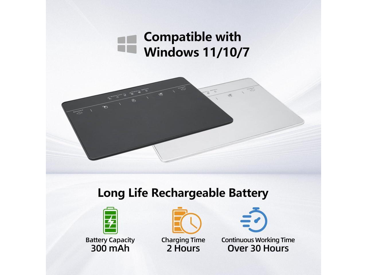 - Long-Life Rechargeable Battery: With built-in 300mAh the trackpad can work up to 30 hours after 2-hour charging. The wireless design allows you to use the trackpad anywhere anytime.