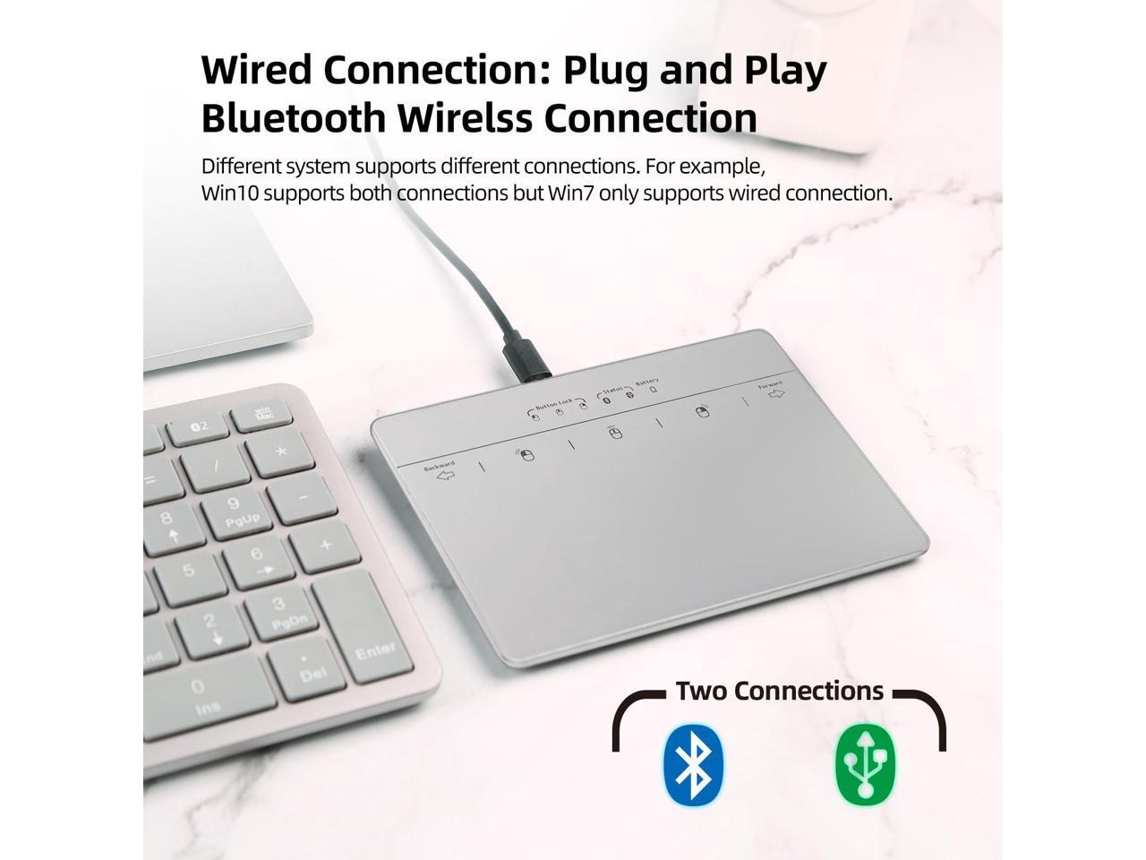 Wired & Wireless Metal Touchpad for PC Computer & Laptop, Rechargeable Trackpad Travel-Friendly Bluetooth & USB Mouse Pad for Windows 7/10/11, Silver