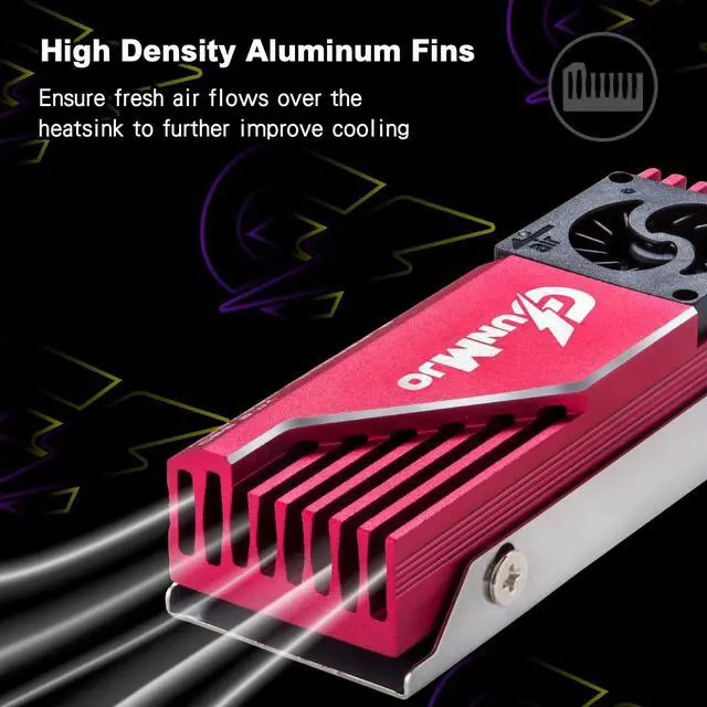 GUNMJO M.2 2280 SSD Heatsink, 20mm Built-in Cooling Fan, Aluminum Plate-Fin Design, with Thermal pad for AI and Gaming PC, Red