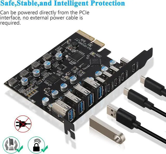 1. Add 4 USB A/4 Type USB C ports on the desktop computer through the PCIe slot, Transmit data transfer speeds of up to 10 Gbit/s.