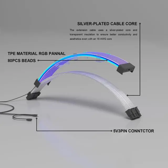 • Sirlyr RGB Dual 8 Pin Extension Cable,11.8 inch Addressable RGB PSU Extension with 3 Pin 5V ARGB Motherboard Sync,Silicone Material, Flexible Easy Cable Management for Gaming PC Build