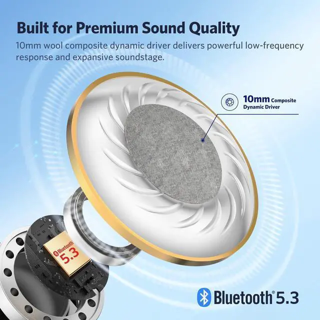 [LDAC Codec & Hi-Res Sound] 10mm wool composite dynamic drivers deliver crisp and detailed audio. Featuring LDAC codec and Hi-Res Audio certification, the wireless earbuds transfer 3x more data than ordinary TWS, effectively reducing signal degradation during wireless transmission to preserve sonic detail.