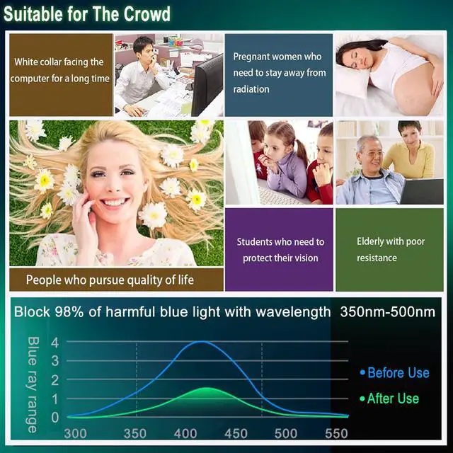 WHO NEEDS MORE A BLUE LIGHT FILTER-insomniac, students, office staff, game lovers, fashion beauty, pregnant women, elderly, filter out Blue Light and relieve computer eye strain to help you sleep better