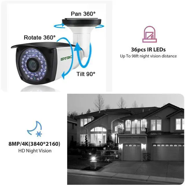 [(4K Ultra HD Image & POE Camera)] Want to watch ultra high-definition videos in real time? Or want to Power Over Ethernet? Try this SV3C 4K (8MP) POE IP camera! With maximum resolution 3840 * 2160, 3.6mm 8MP lens, this POE IP camera can present ultra HD videos and pictures for you. As this is a POE IP camera, the camera can be powered over Ethernet, which means it is more convenient and can have a more stable network.