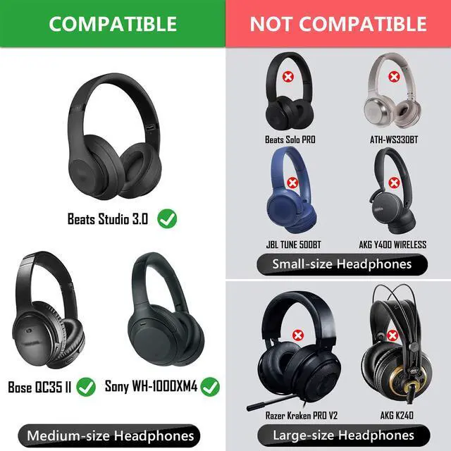 - Compatible with Audio-Technica WS550, SR9, SR50, MSR7, M70, M60, M50xBT, M50x, M40, DWL770, DWL550 headphone covers