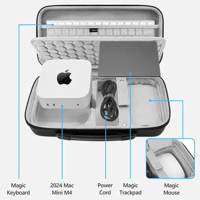 Protect your Host with a hard shell case from Geekria!: - Compatible with 2024 Mac Mini M4 desktop computer case. - Compatible with Magic Keyboard case. - Compatible with Magic Mouse case. - Compatible with Magic Trackpad case.