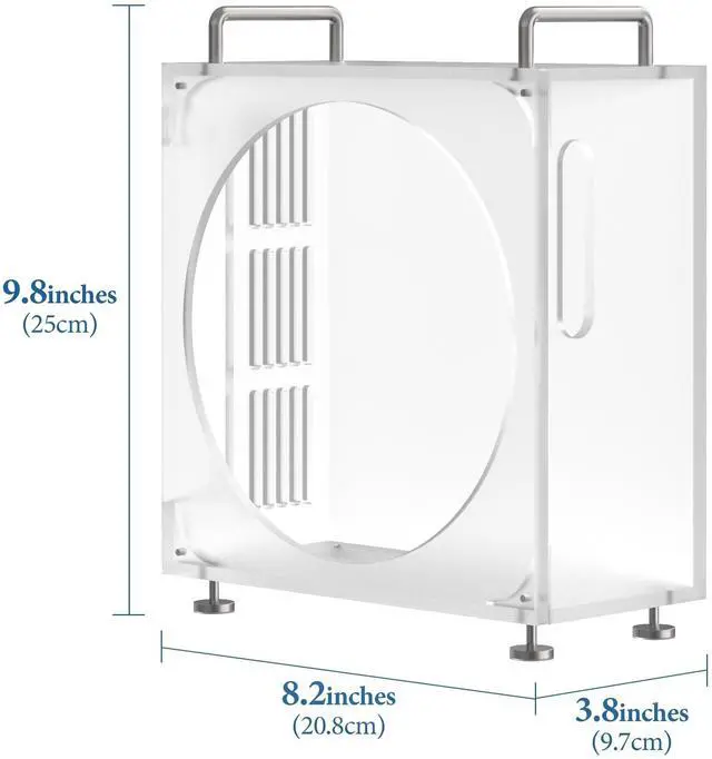 Overall dimensions of chassis stand: 9.8 x 8.2 x 3.8 in (25 x 20.8 x 9.7 cm).