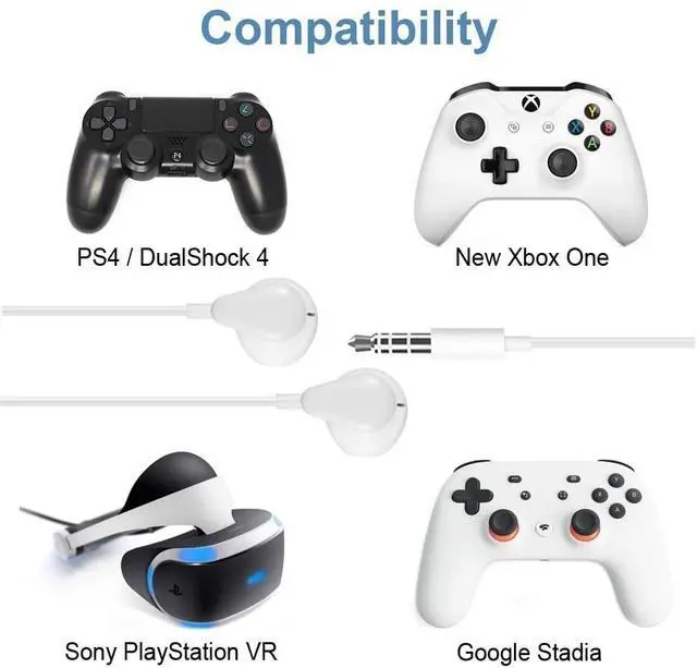 Compatible: Compatible with Google Stadia, PS5/DualSense Wireless Controller, PS4 / DualShock 4, Luna Controller, Xbox Elite Wireless Controller Series 2, New Xbox One Controller, Sony PlayStation VR2, Sony PlayStation VR, Laptop, Tablet, PC, Mobile Phones and more devices compatible with 3.5 mm headphones.