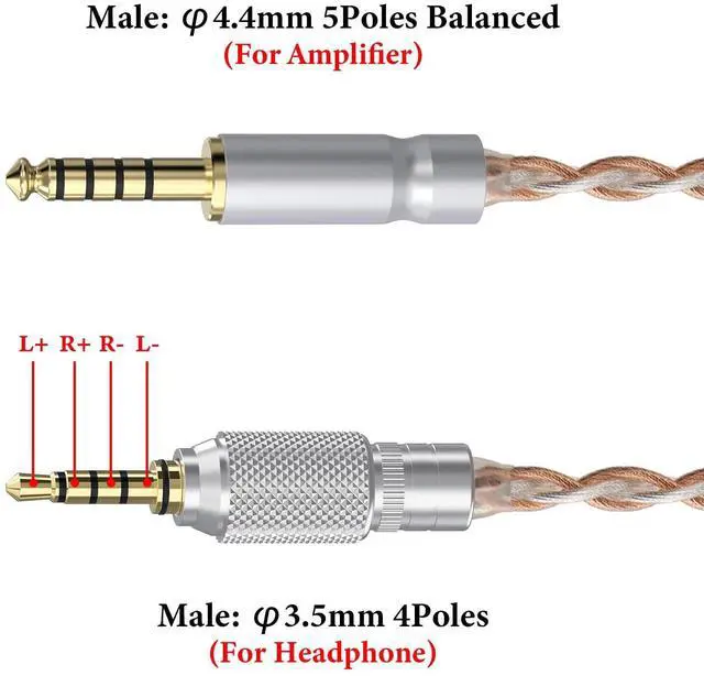Plug: Gold-plated 4.4 mm/ 3.5 mm connectorLength: