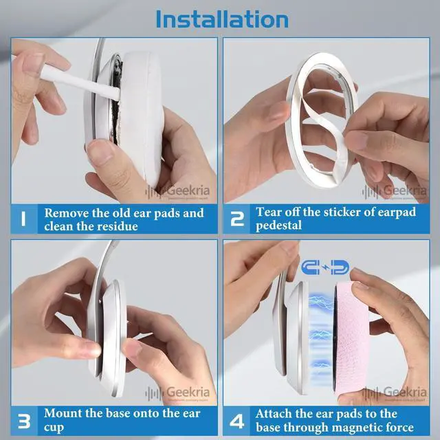Package Includes: - One set of ear cushions. Made by Geekria. - A toolkit to help install the ear pads.