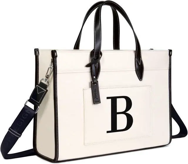 TOPDesign Initial Laptop Tote Bag for Women, Stylish Canvas Bag for 15.6 Inch Computer, Personalized Monogrammed Work Purse, Large Casual Business Briefcase, Office Handbag, Perfect Gifts for Her