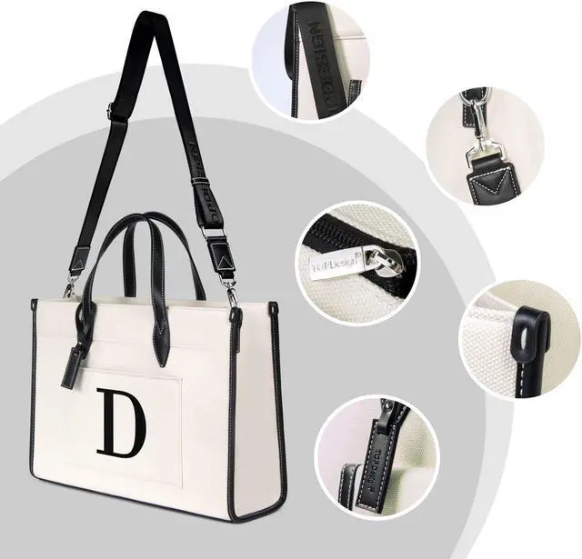 TOPDesign Initial Laptop Tote Bag for Women, Stylish Canvas Bag for 15.6 Inch Computer, Personalized Monogrammed Work Purse, Large Casual Business Briefcase, Office Handbag, Perfect Gifts for Her